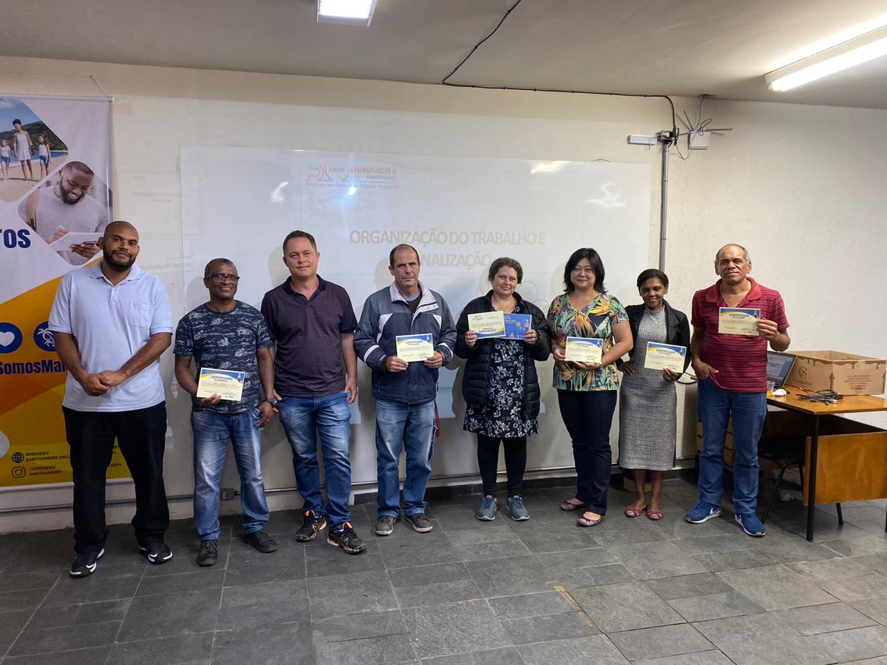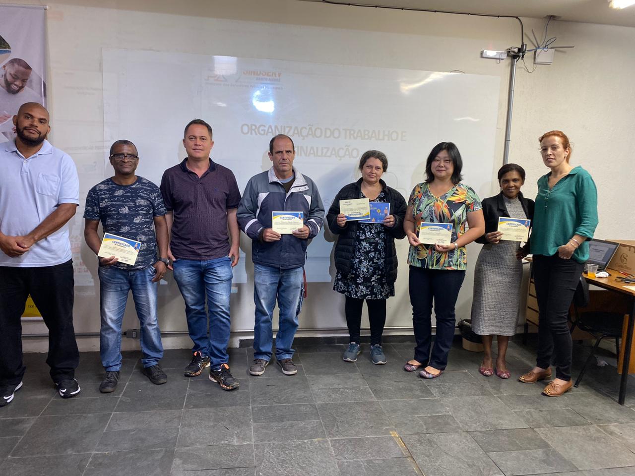 O Sindserv Santo André realizou na quinta-feira (21), em sua sede, o curso “Treinamento sobre ambiente de trabalho, organização, sinalização e higiene”. A atividade reuniu servidores e servidoras de autarquias, como da Funerária, Craisa e do Semasa.