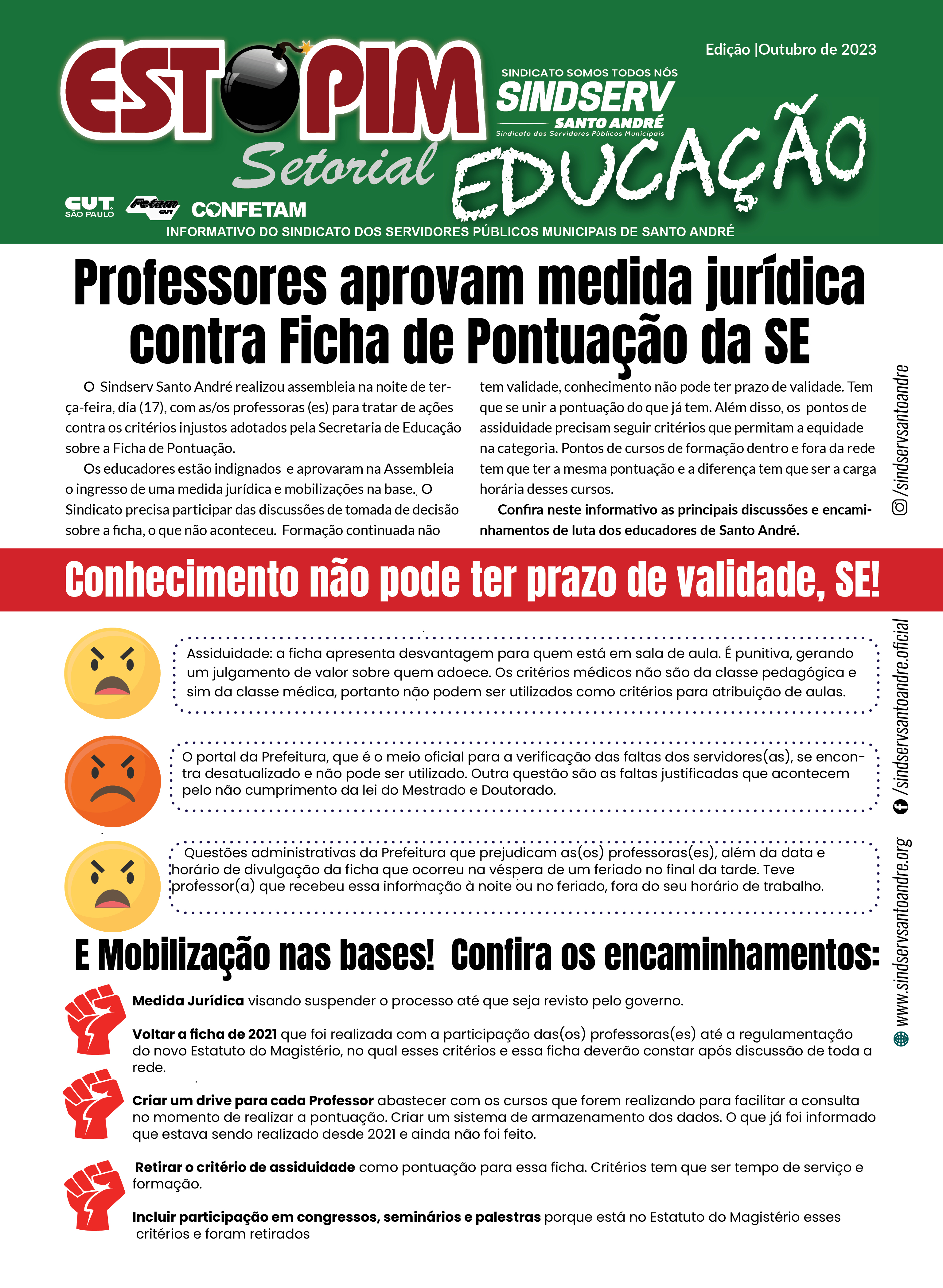 O Sindicato precisa participar das discussões de tomada de decisão sobre a ficha, o que não aconteceu. Formação continuada não tem validade, conhecimento não pode ter prazo de validade. Tem que se unir a pontuação do que já tem. Além disso, os pontos de assiduidade precisam seguir critérios que permitam a equidade na categoria.