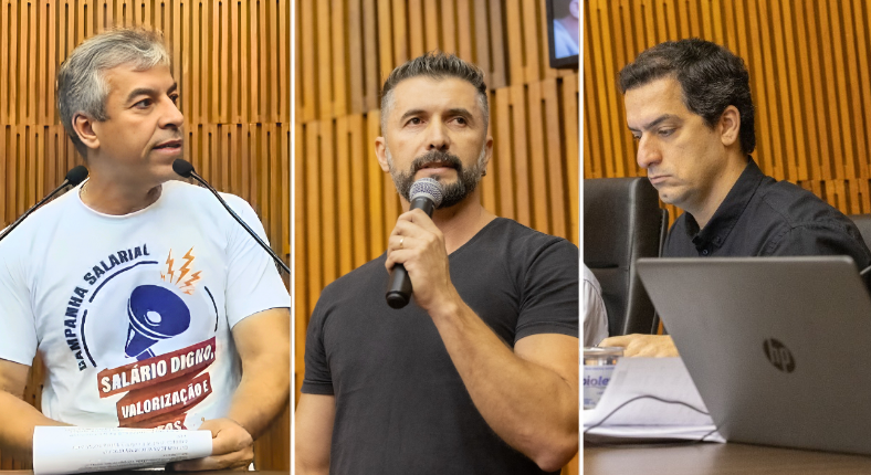Durval, Alan e o secretário de Finanças da PMSA, Pedro Seno - fotos: Assessoria de Imprensa da Câmara Municipal - montagem Mídia Consulte