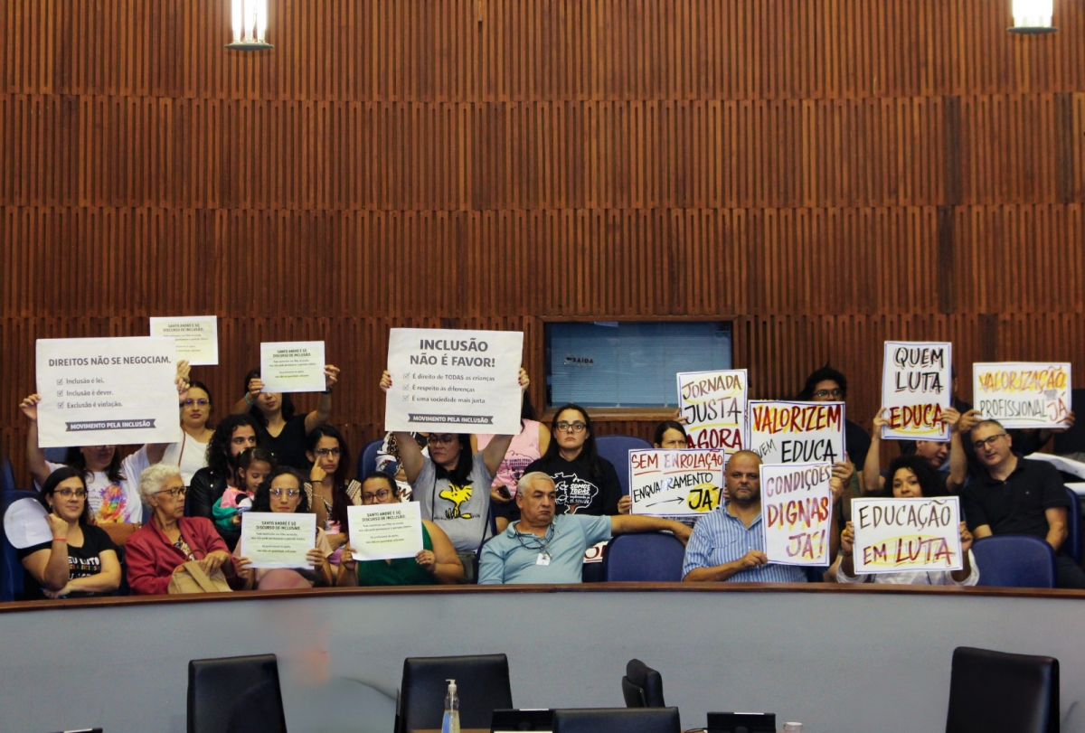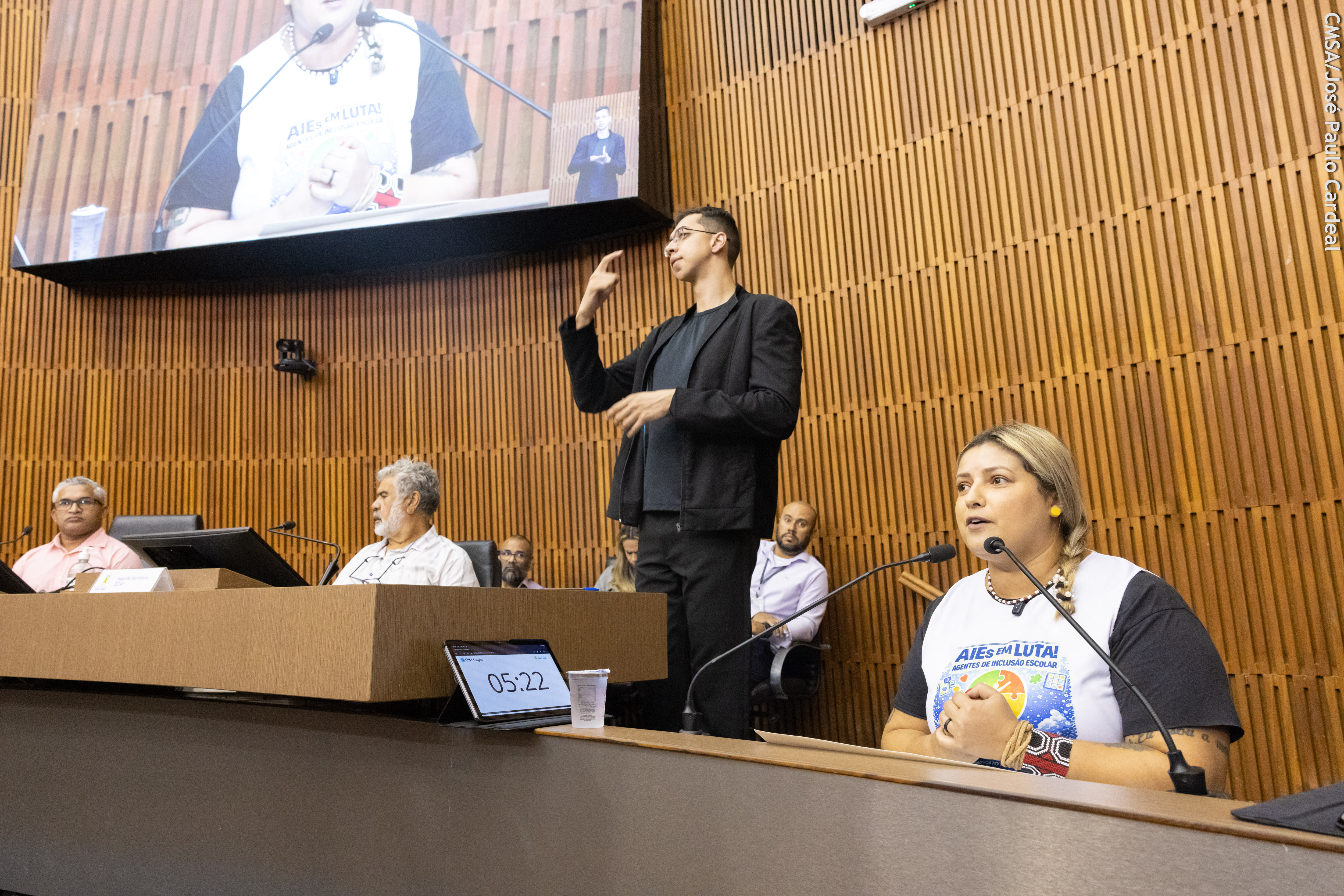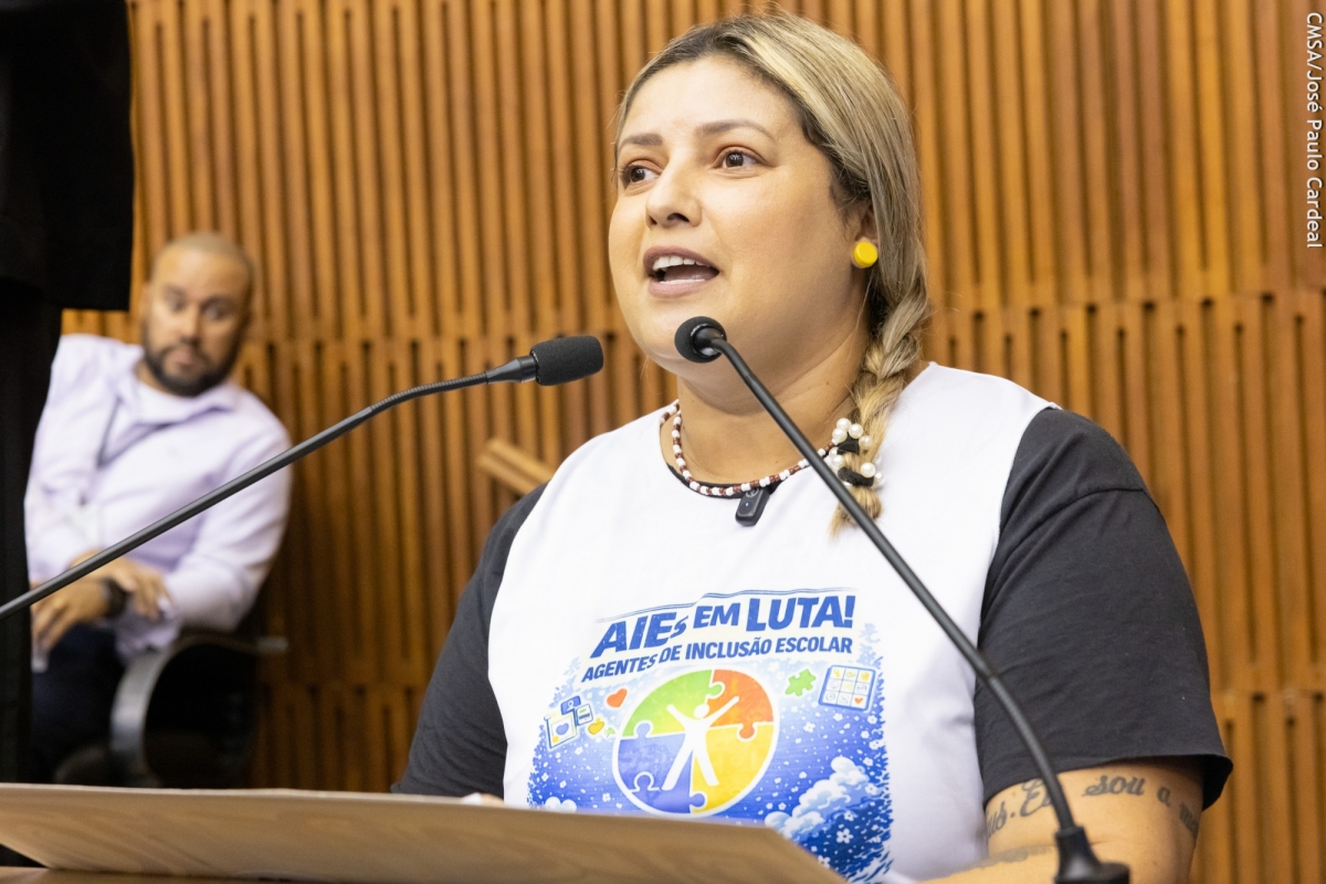 “Essa Comissão é resultado da nossa luta e pressão. Vamos participar e encaminhar as demandas dos AIEs. Sabemos a realidade dos trabalhadores do chão da sala de aula. Precisamos da contratação emergencial desses profissionais, da abertura de concurso público para essa função e da implementação das 30 horas para os AIEs. Com vontade política, dá para fazer, basta querer. Eles estão sem saúde, precisamos dessa valorização. AIE, vem com a gente, não desista da luta”, frisa a diretora, professora Daisy Dias. (Foto: José Paulo Cardeal)