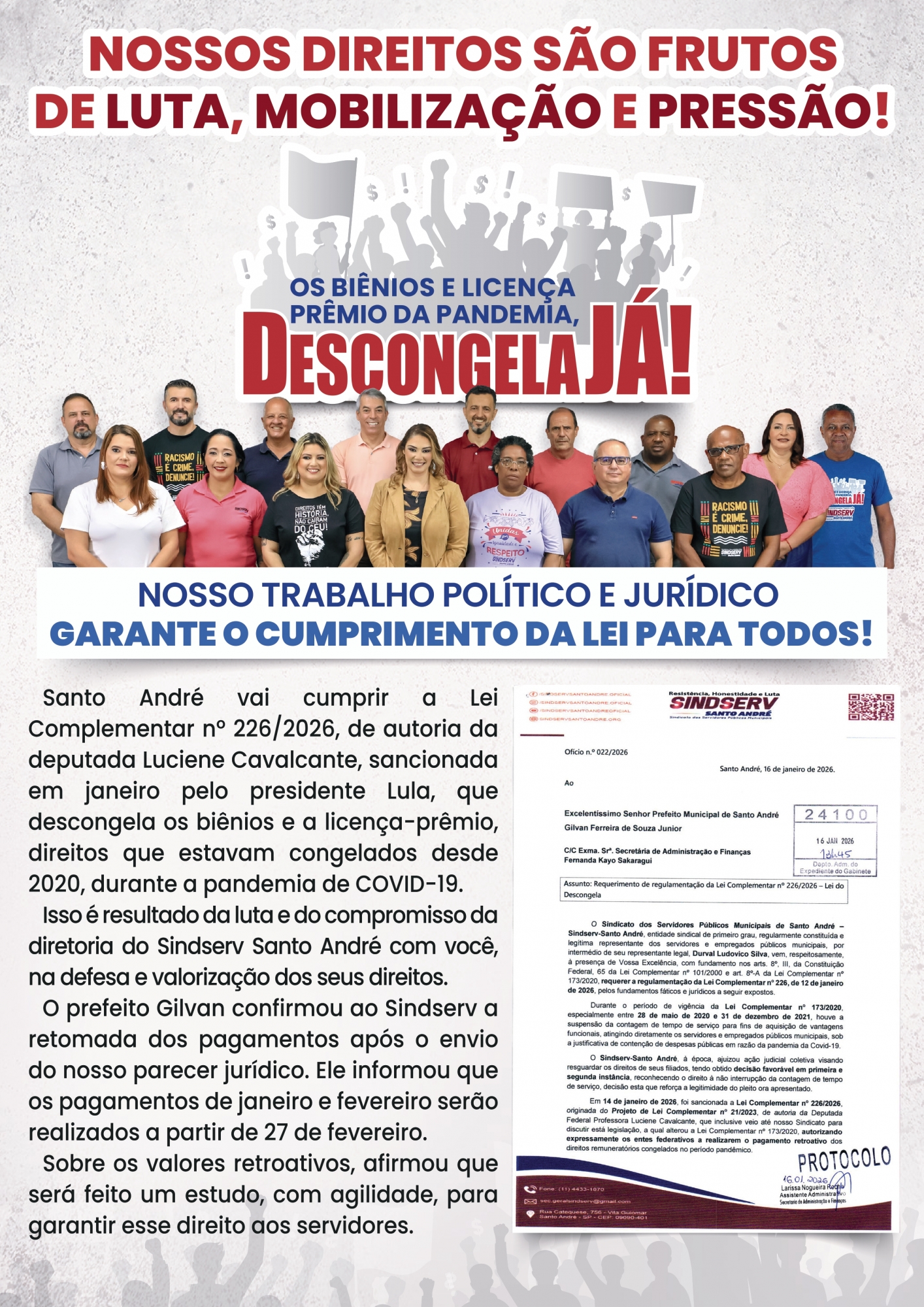 Prefeitura atende parecer do Sindserv Santo André e efetuará pagamento dos biênios e licença-prêmio congelados na pandemia