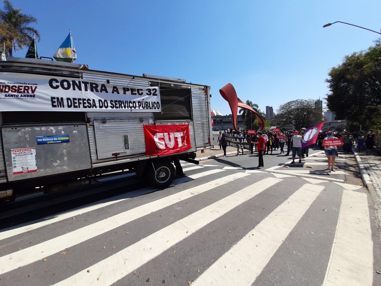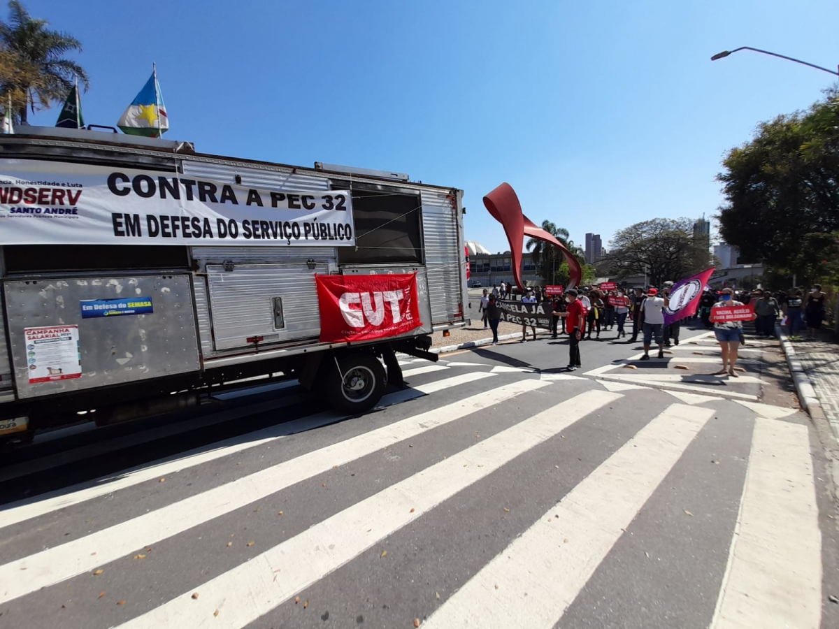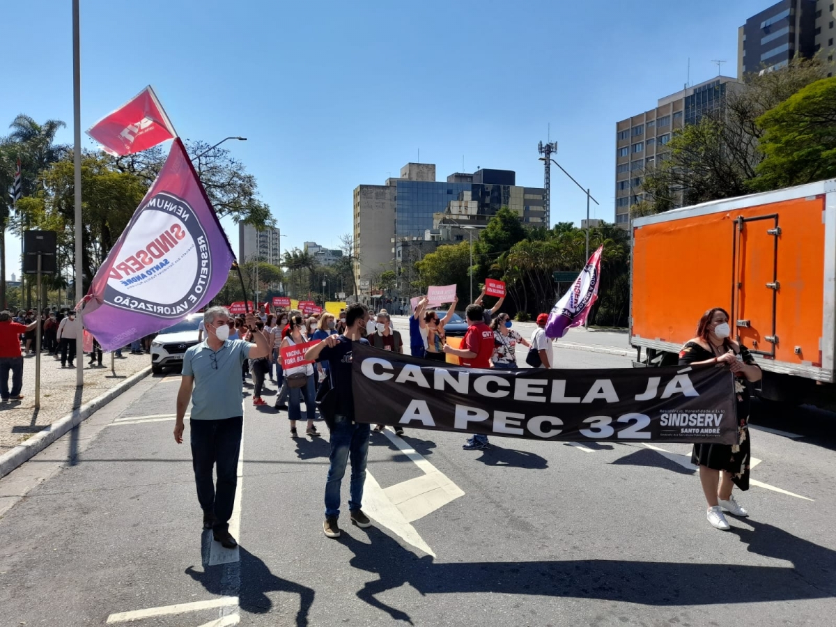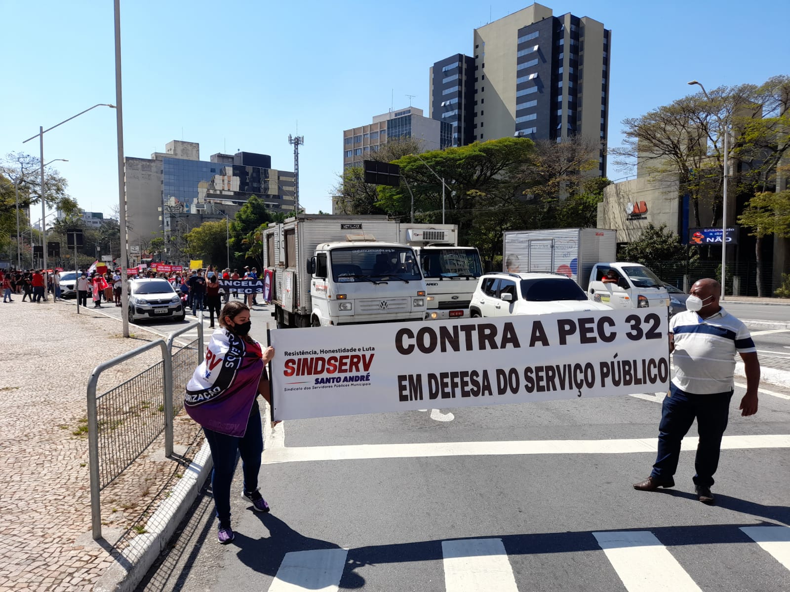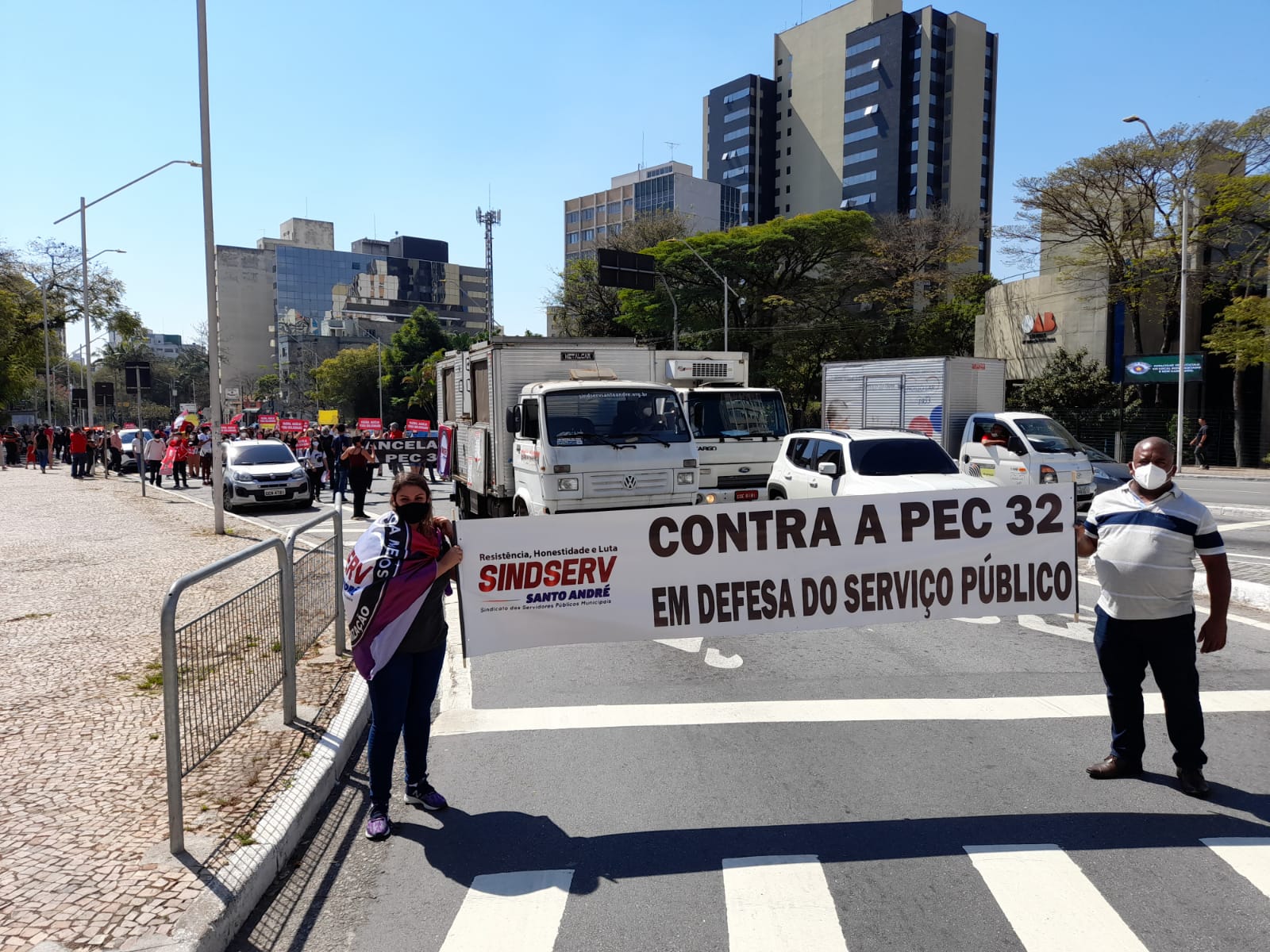 Servidores andreenses protestam contra PEC-32 da reforma administrativa (18 de abril de 2021) créditos: Dino Santos e Alan Duarte