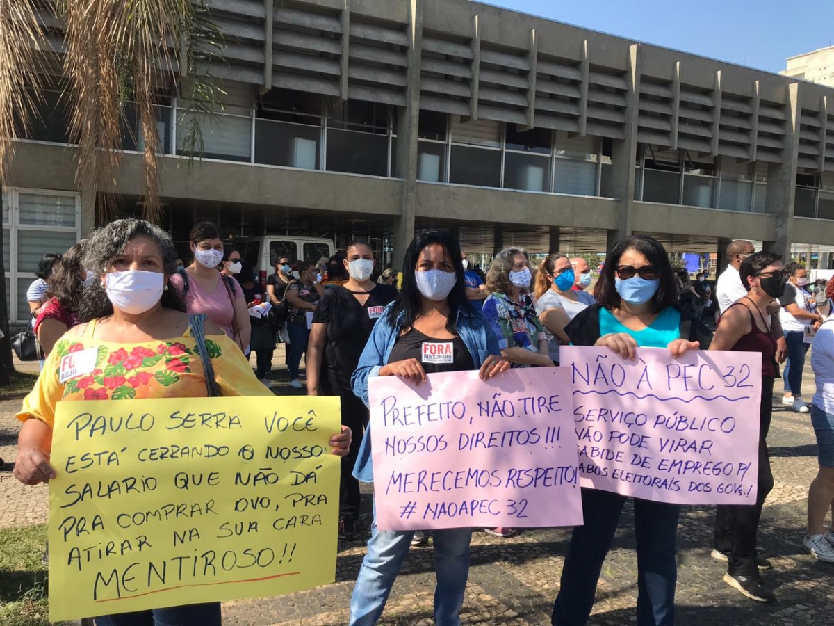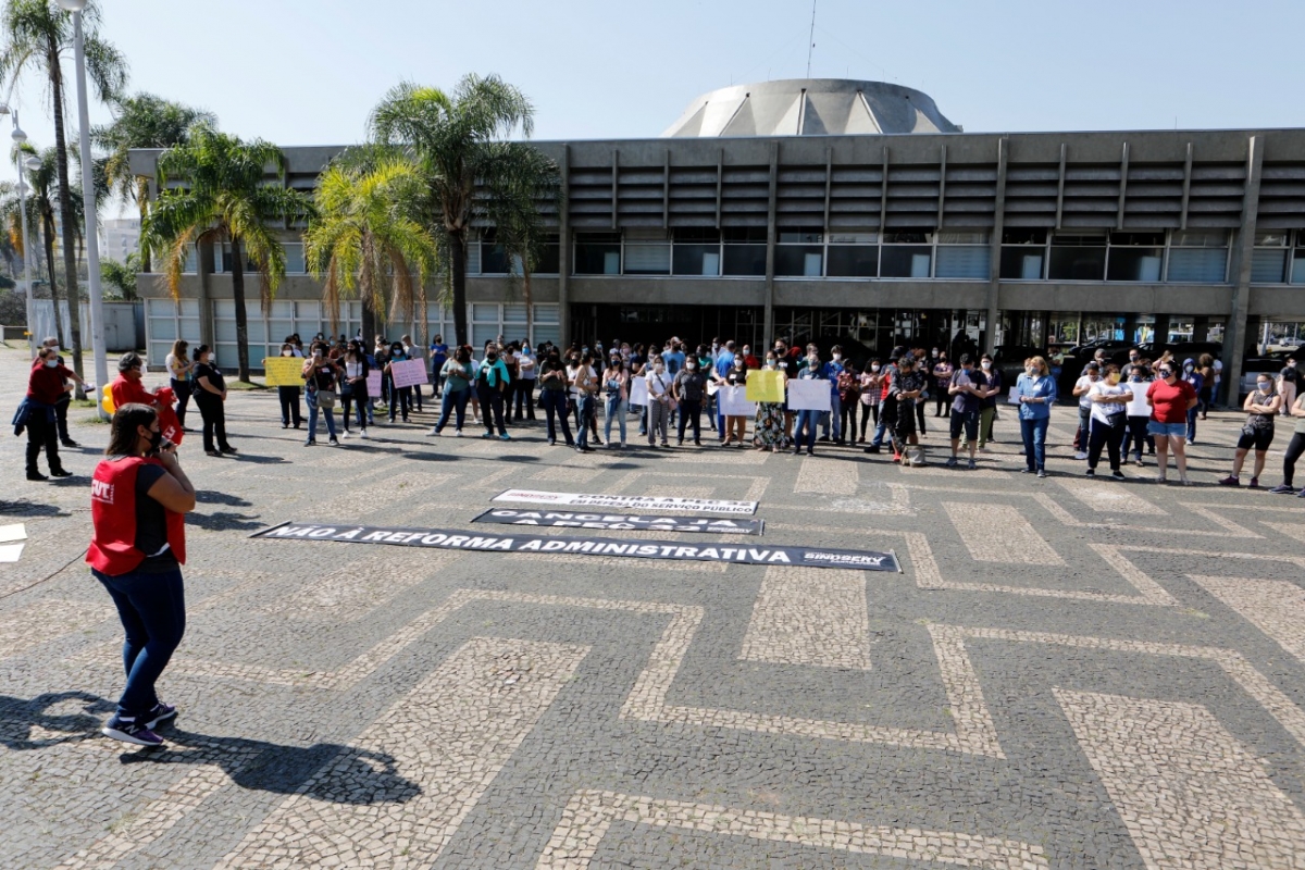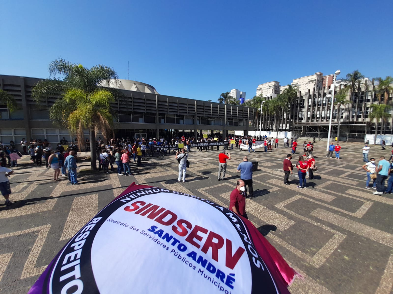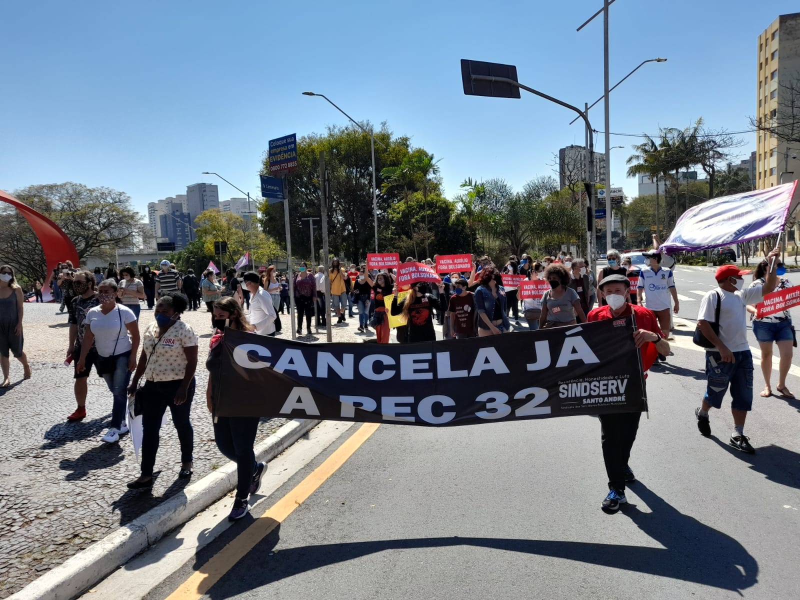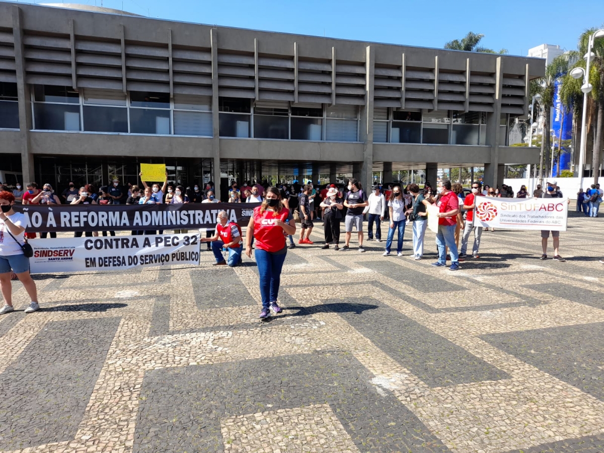 Servidores andreenses protestam contra PEC-32 da reforma administrativa (18 de abril de 2021) créditos: Dino Santos e Alan Duarte