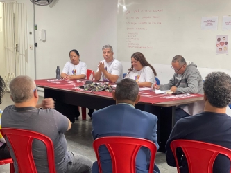 Os dirigentes do Sindicato, Durval, Alan, Eduardo, Heber e Bruna, se reuniram com o diretor Financeiro do Semasa, Glauco, e com a gerente de Recursos Humanos Edilene.