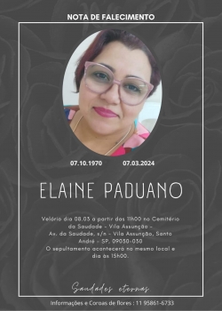 O velório e sepultamento acontecerá, das 11h às 15h, nesta sexta-feira, dia (8), no Cemitério da Saudade, localizado na Vila Assunção, em Santo André