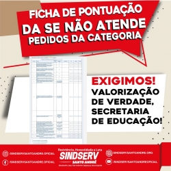 Sindserv Santo André repudia ficha de pontuação da Secretaria de Educação que não inclui sugestões dos docentes