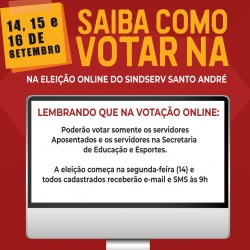 Participe da Eleição do Sindserv Santo André nos dias 14, 15 e 16 de setembro