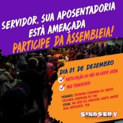 Previdência Social: Sindserv convoca categoria para decidir sobre participação na greve geral no dia 5/12