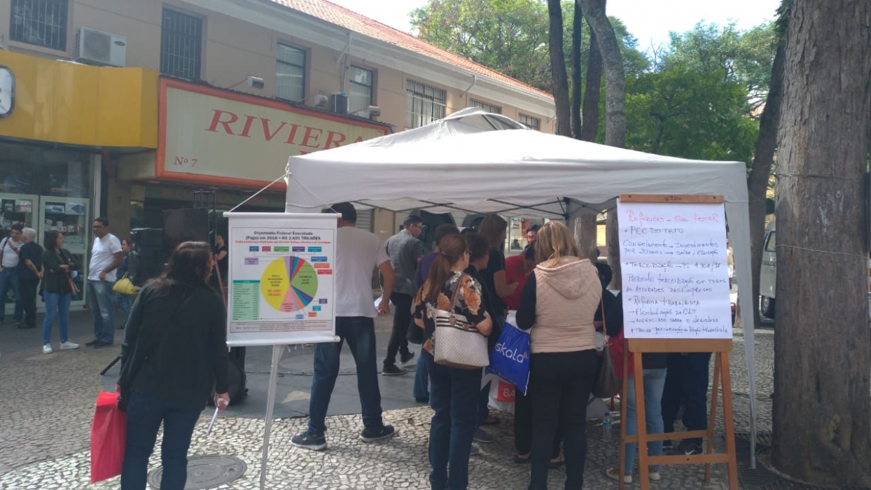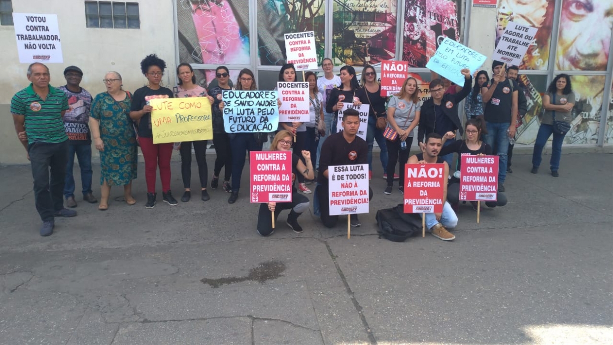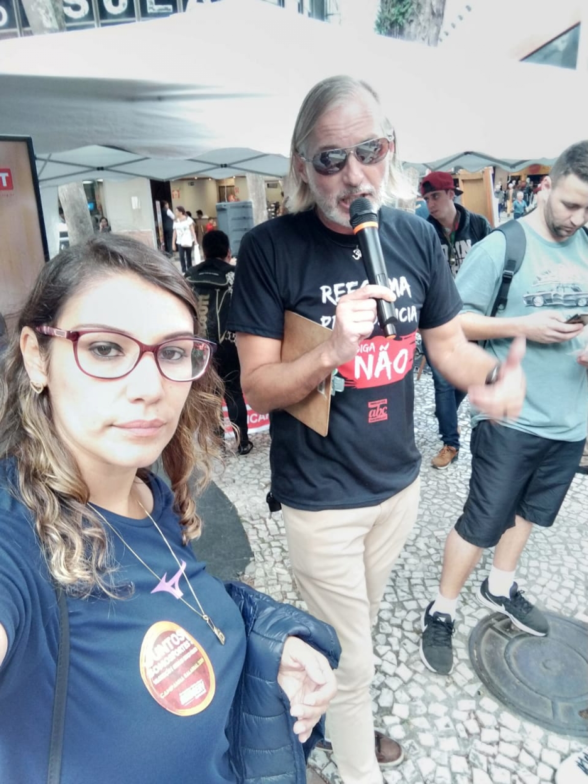 Já o professor Rodrigo Gomes e diretor do Sindicato alertou a população andreense contra a reforma da Previdência. "Essa reforma vai atingir brutalmente os professores e educadores. Temos uma luta muito grande pela frente contra os cortes da educação e contra a nefasta reforma da Previdência. O ministro Paulo Guedes não sabe o que é estar numa sala de aula com 35 alunos, não vamos nos entregar e vamos lutar!", destaca Gomes.