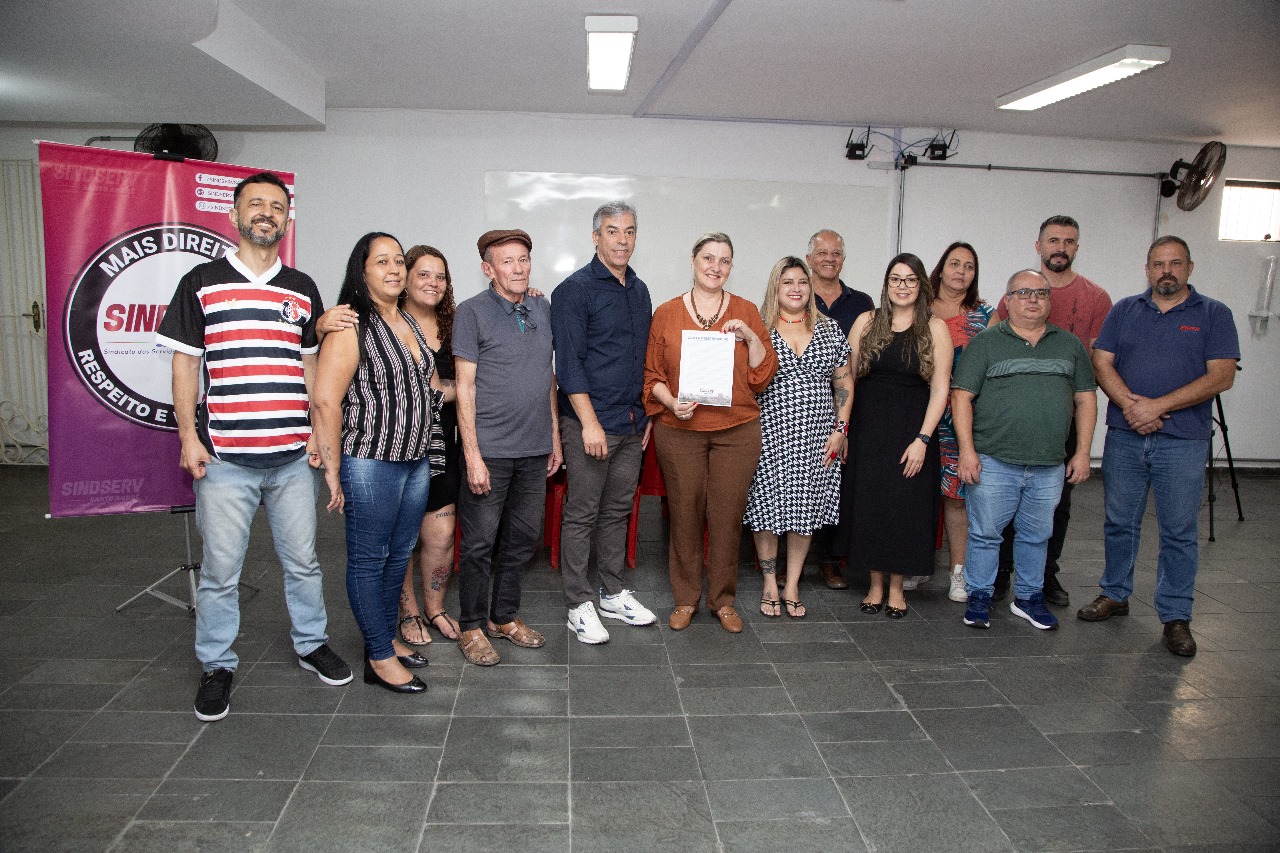 Bete Siraque, candidata do PT à prefeitura, com a diretoria do Sindserv Santo André.