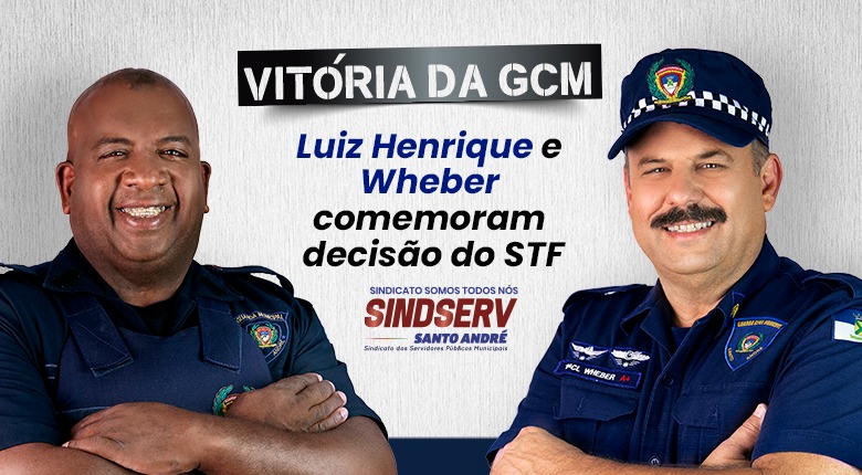 Os GCMs Luiz Henrique e Wheber Lopes, diretores do Sindserv Santo André, parabenizam a decisão do Supremo Tribunal Federal (STF) que decidiu que é constitucional a criação de leis pelos municípios para que guardas municipais atuem em ações de segurança urbana.